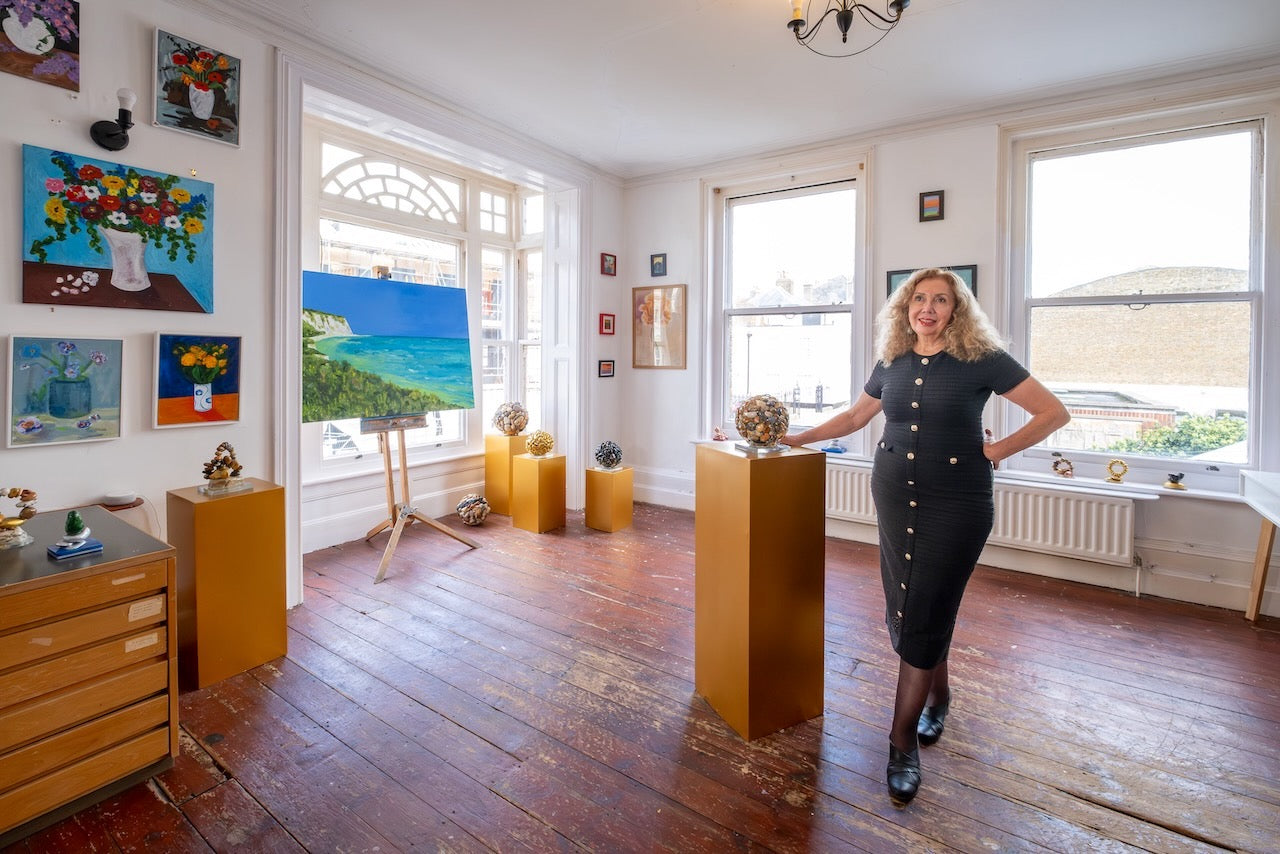 Alongside rotating exhibitions of her paintings, sculptures, and curated Modern Master prints, the space also supports a growing programme of art workshops, including her long-running Kids Art Club and one-on-one art sessions for adults with additional needs.
