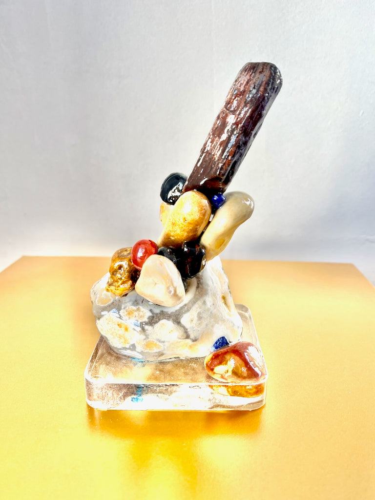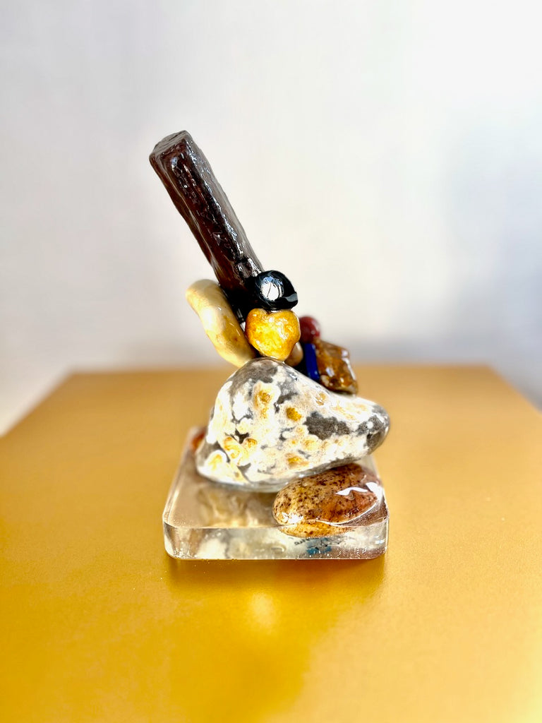 Petrified wood, quartz, jasper, lapis Lazuli and resin