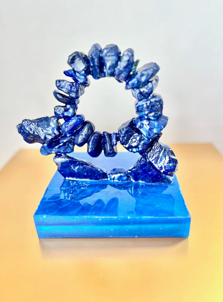 • Azure resin matrix — the binding, water-evoking field that stabilises the ring and deepens the hue.
