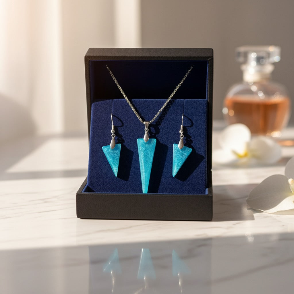 Azure Tide Jewellery – Hand-Crafted Resin Pendant & Earrings
