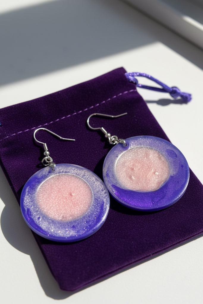 Hand-crafted in delicate tones of mauve, lavender and deep purple, this collection brings a soft, modern elegance to your resin jewellery line. Each piece is individually poured, shaped and polished in my studio, creating gentle crystalline textures and subtle pearlescent shifts that catch the light beautifully.