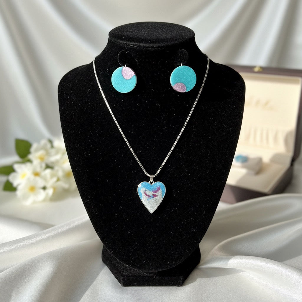 Teal and Mauve Jewellery – Hand-Crafted Resin Earrings