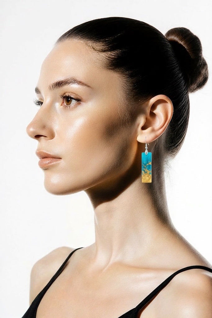 • Hand-cast resin earrings in your chosen shape